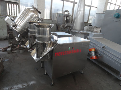| xzL-300-A型旋转式制粒机是食品、制药、化工行业的专家和行业内人士期待多年需解决的问题,是新一代造粒设备。 工作原理:由压料刀逆时针旋转时将粉状物料加压送给造粒刀,造粒刀顺时针旋转时,通过离心力和曲线推力,将物料挤出网孔,完成造粒任务。KL-300-A型旋转式造粒机(两面出料),适用于烘盘接料,其产量比摇摆机提高3倍,每小时产量可达400-1000公斤,水份减少50%,干燥迅速。节省能源。颗粒,结实,均匀,表面光洁,不易结块,成品率高达95%以上,xzL300A旋转式制粒机运转平稳,安全可靠,基本消除了事故,操作容易,维修方便,使用寿命长。目前xzL300A旋转式制粒机可以为贵单位能提高产品的产量和质量,节约能源,降低成本,创造更高的经济效益,欢迎贵方能尽快使用xzL-300型旋转式造粒机。 |