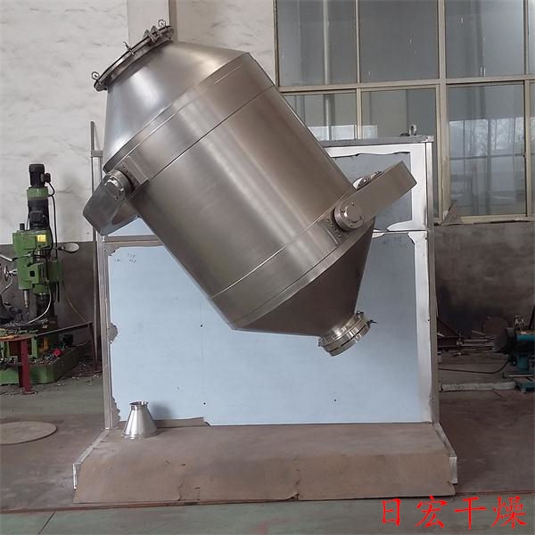 ② 三维混合机的混合筒设计独特,身体内壁经过精密抛光,无死角,不污染物料,出料时物料在自重作用下顺利出料,不留剩余料,具有易出料、不积料、易清洗等优点。